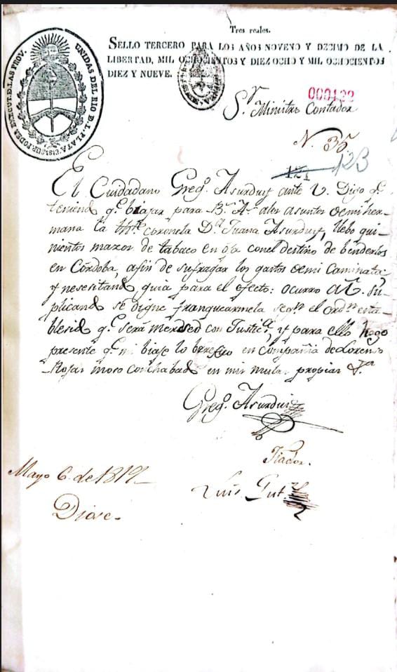 Documento de Oficios Varios N°20 - Mayo 6 de 1819 - fs. 122- Volumen 20